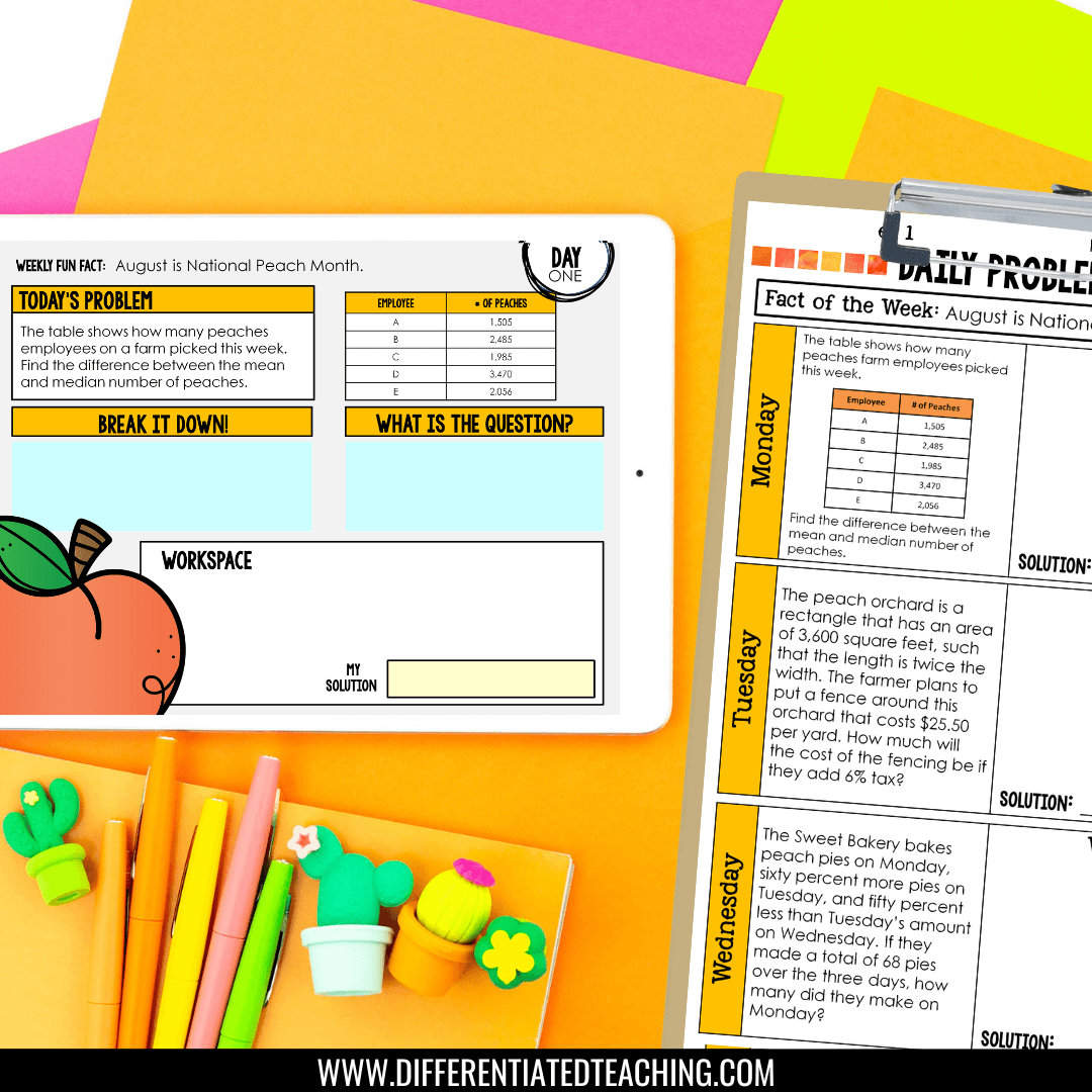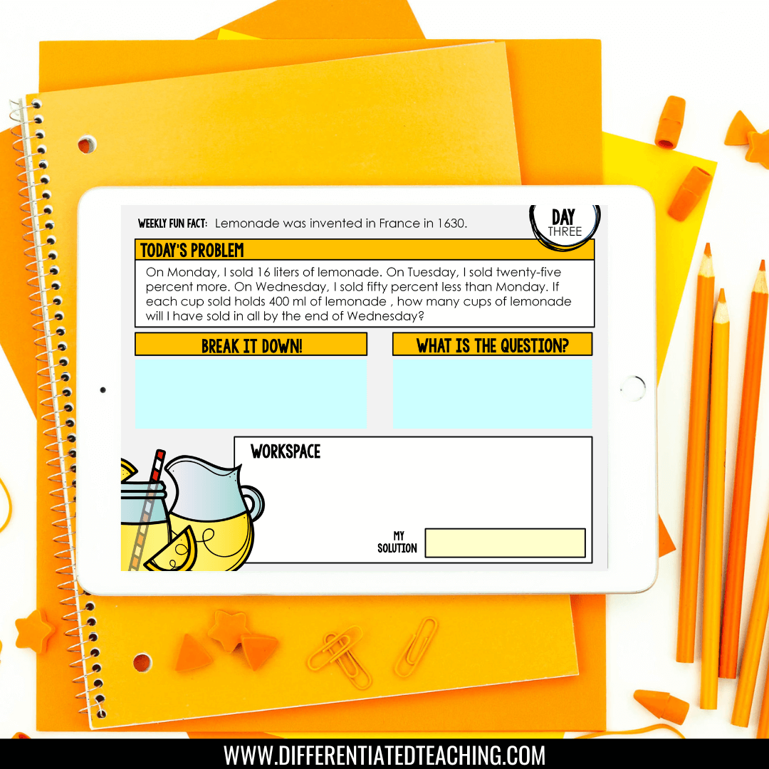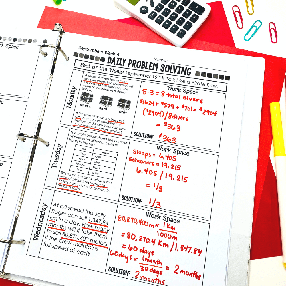 7th Grade Math Word Problem of the Day: Yearlong Story Problem Solving Practice for Middle School