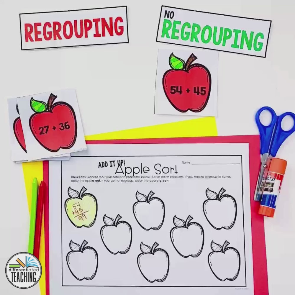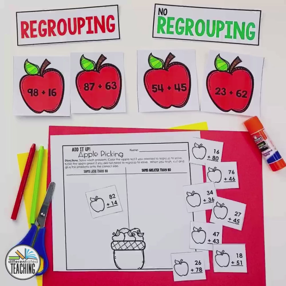 In these Apple-themed Addition with Regrouping Activities for Fall you'll find:
